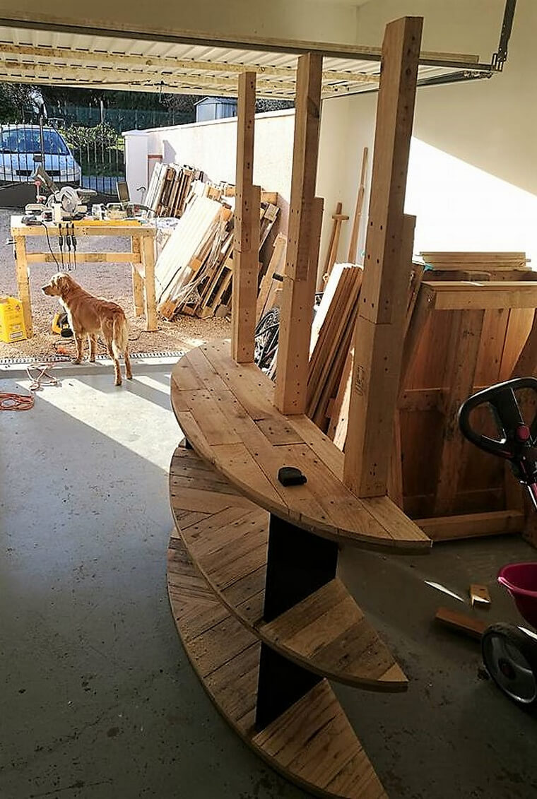 Now here comes the step of making the back of the repurposed wood pallet, so which the support of the back is to create first and then the whole back is created. The back of the TV stand is on the upper layer on which the TV will be fixed.