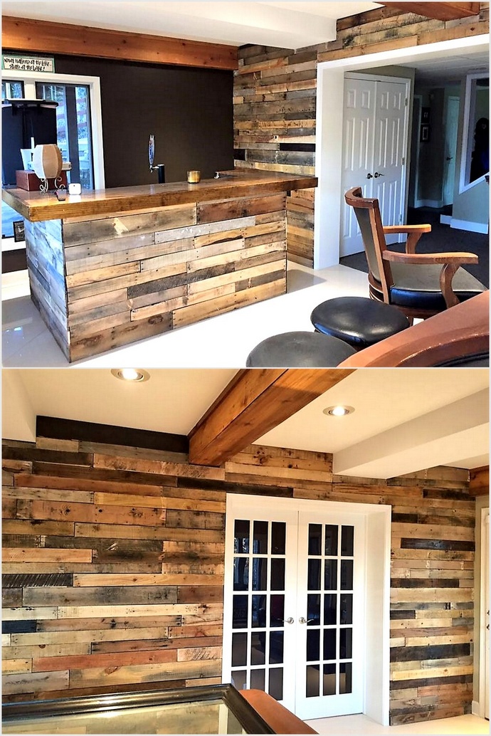 It is not always necessary to get the floor with marble for the appealing look of the home because you can see how great the upcycled pallet wood floor looks. The combination of multiple dark colors is making the room attractive and this style is unique.