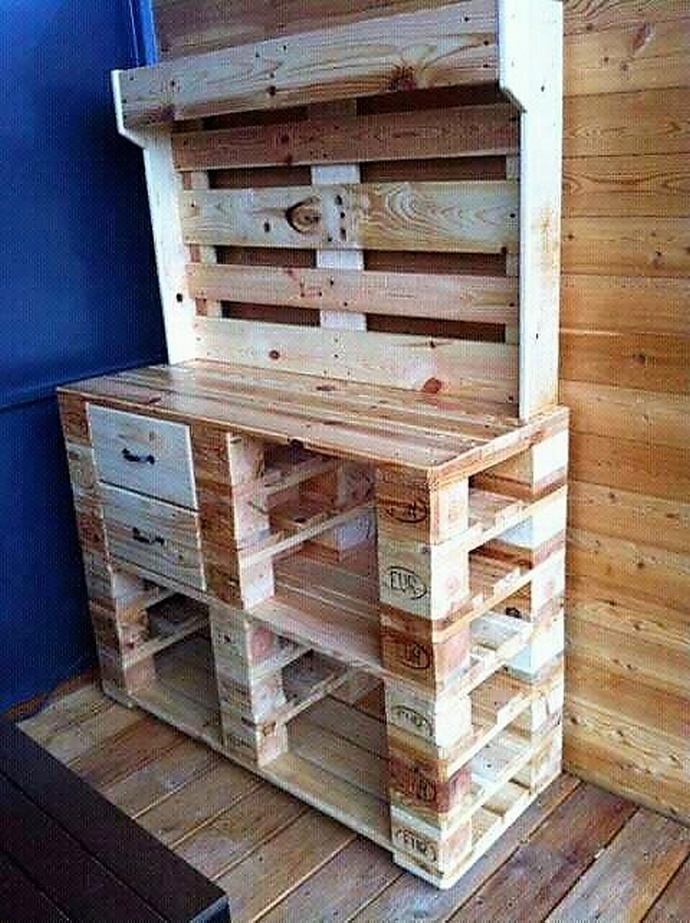 The presented vintage side table with drawers is made up of recycled wood pallets, but a person who doesn’t know the uses of the pallets can even imagine building a side table with them. The color of this table is blue, but it can be according to the person’s choice and the surface of brown color is looking perfect.